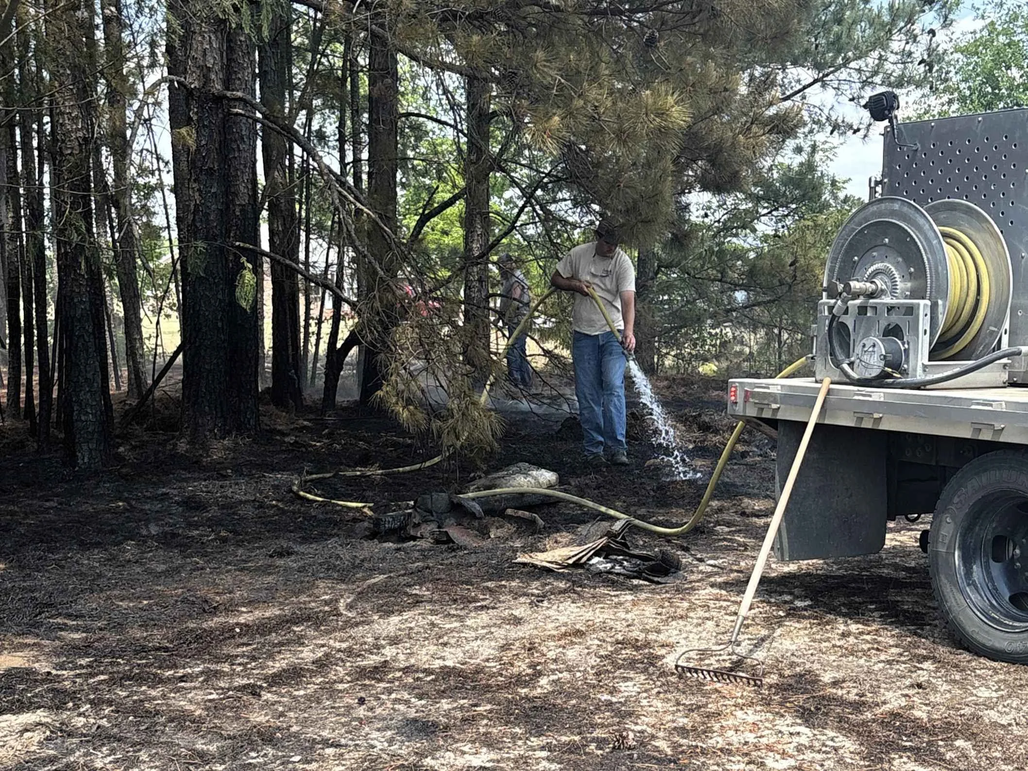 The homeowner told responders the fire started while burning a bag of trash and cardboard. Crews reminded the homeowner that a burn ban was in effect and that outdoor burning is not permitted during the ban.