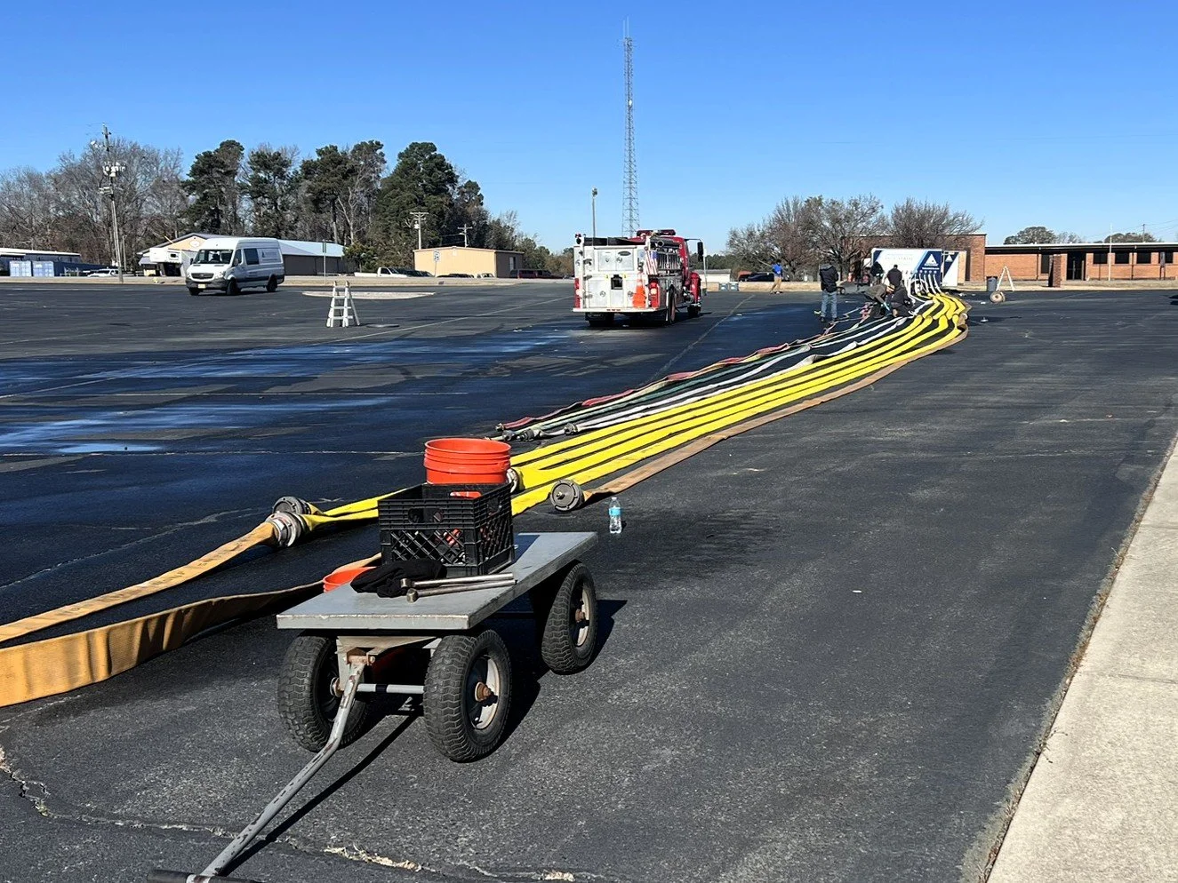 Volunteers from High Point Fire District dedicated their day to performing the annual hose pressure testing at the Pageland Community Center parking lot. During this important safety exercise, over 12,000 feet—more than two miles—of fire hose was unloaded, thoroughly tested, and reloaded by the testing vendor and our team.