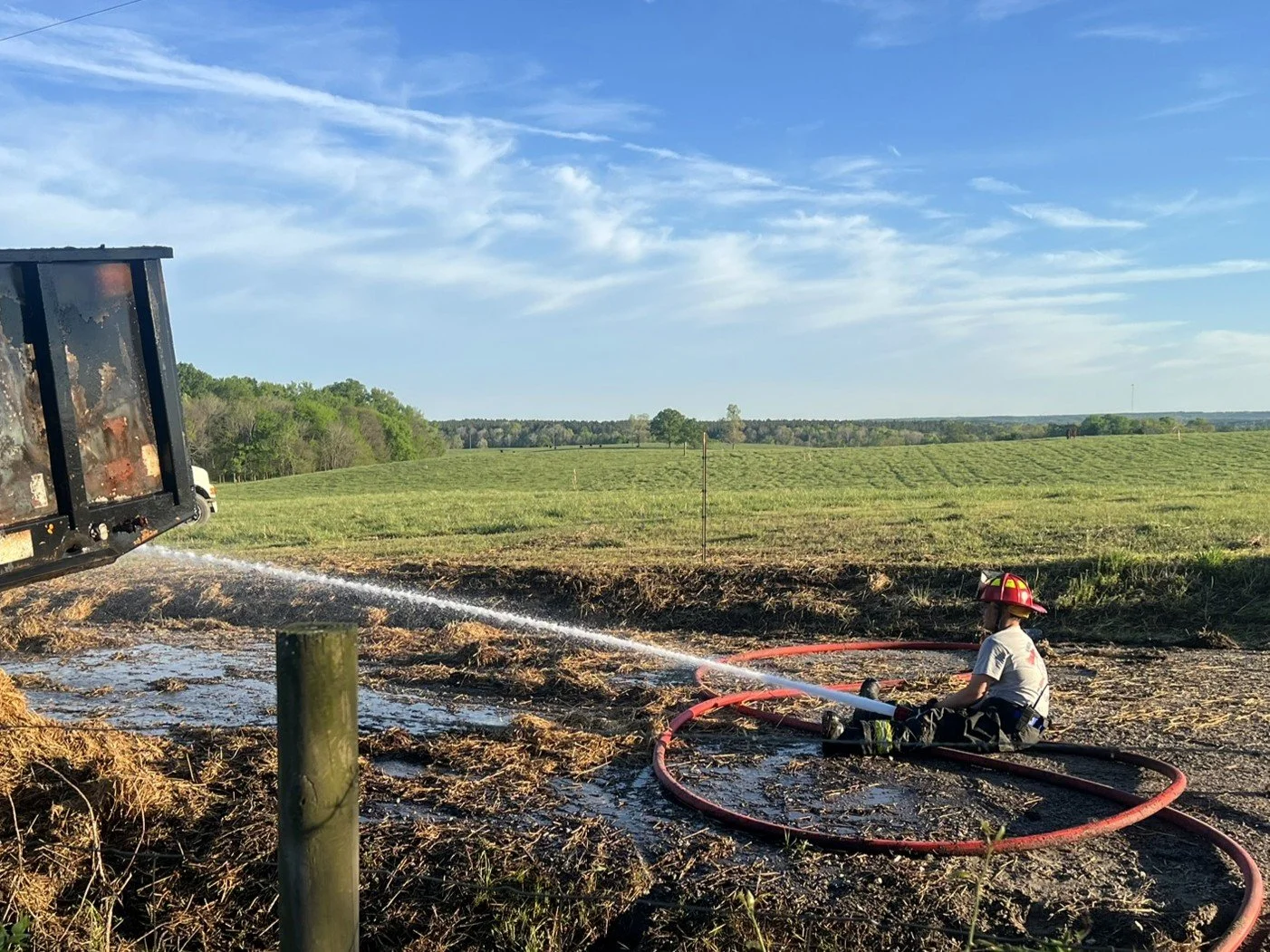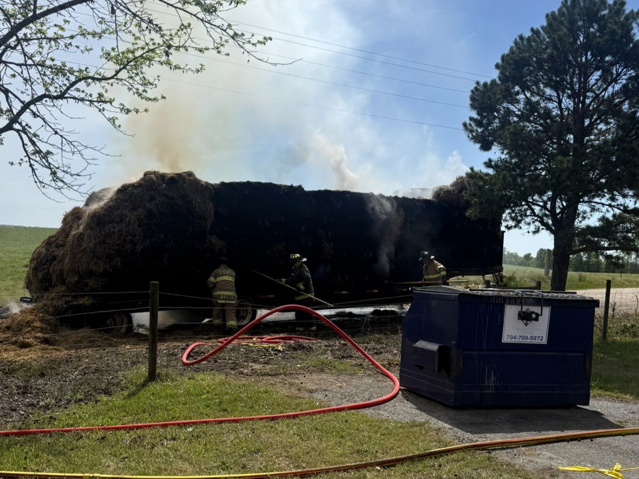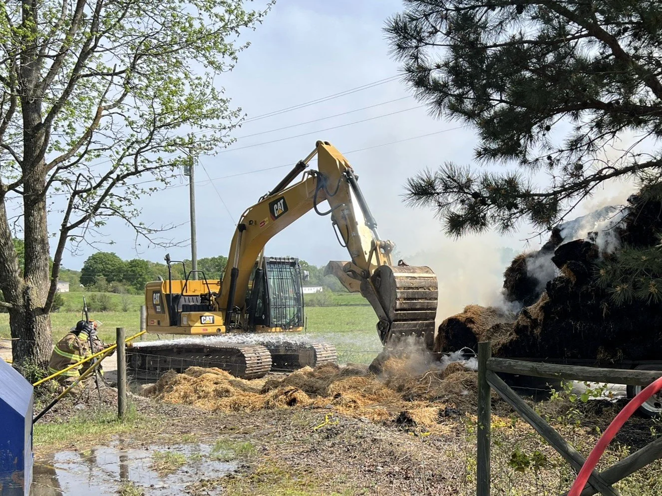 Crews from Engine 41 advanced two handlines and began fire attack. Due to water supply needs, tankers were requested from Lanes Creek Fire Department. High Point and Lanes Creek tankers rotated, dumping into a portable holding tank that served as Engine 41’s water source. An excavator was employed to pull burning hay from the trailer so firefighters could wet it down and fully extinguish hotspots.