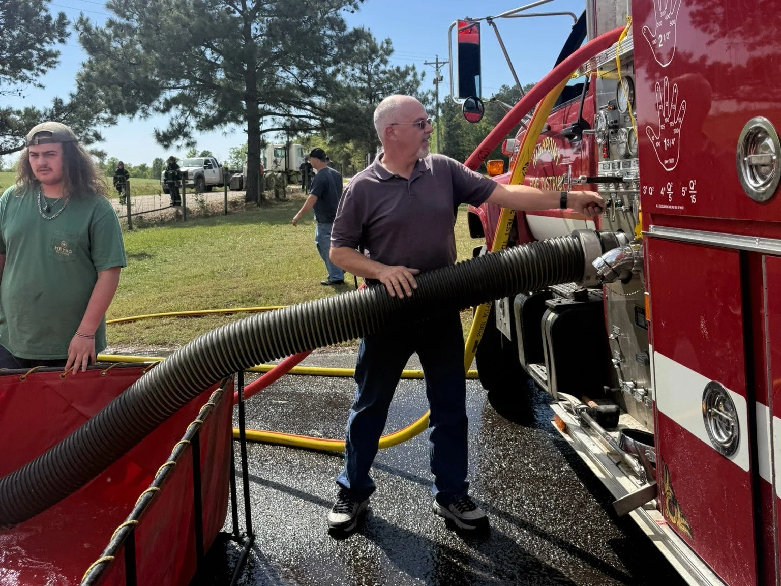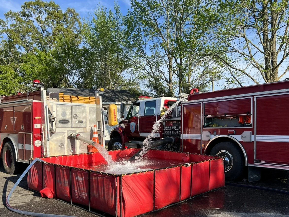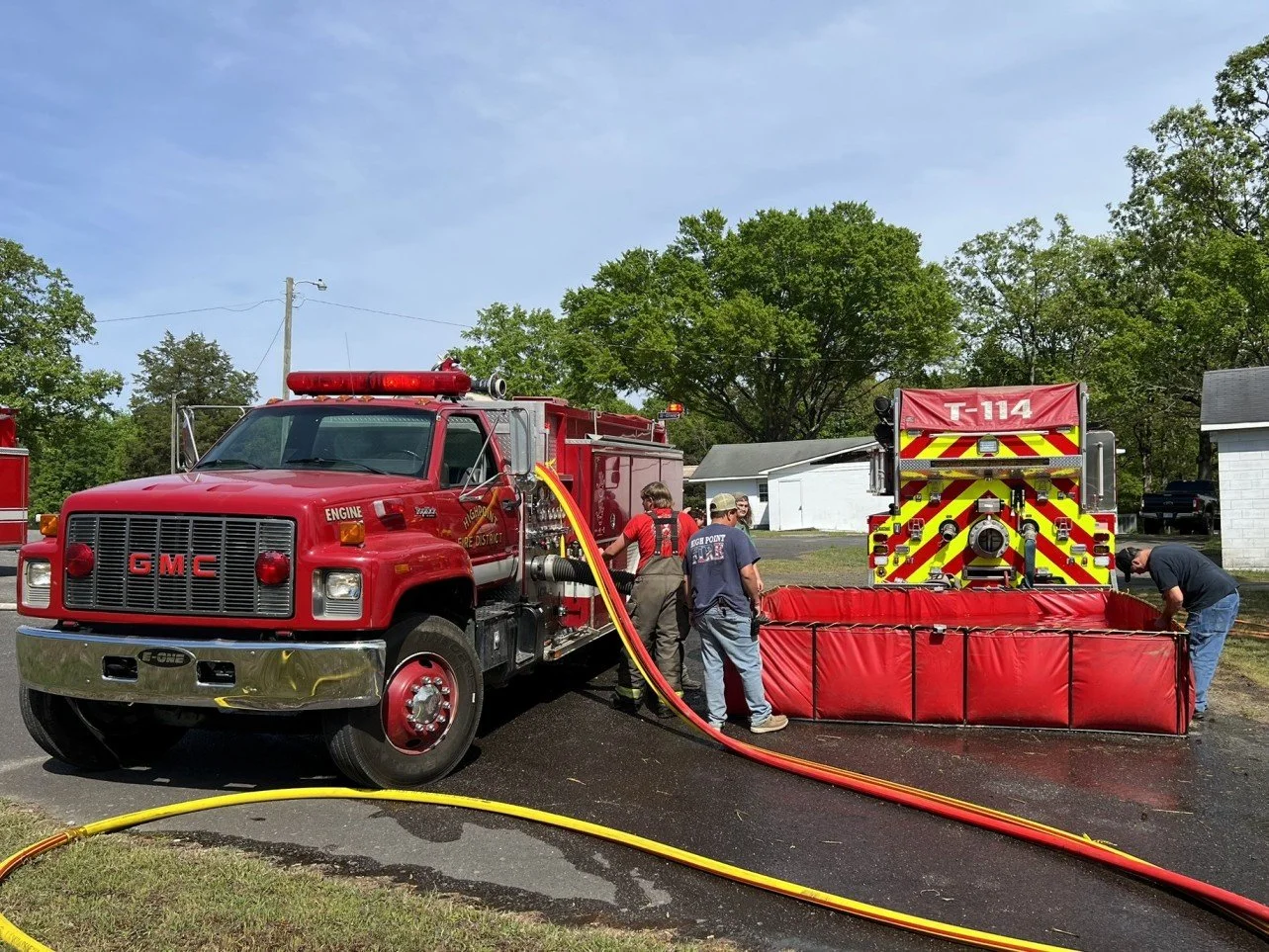 Crews from Engine 41 advanced two handlines and began fire attack. Due to water supply needs, tankers were requested from Lanes Creek Fire Department. High Point and Lanes Creek tankers rotated, dumping into a portable holding tank that served as Engine 41’s water source. An excavator was employed to pull burning hay from the trailer so firefighters could wet it down and fully extinguish hotspots.