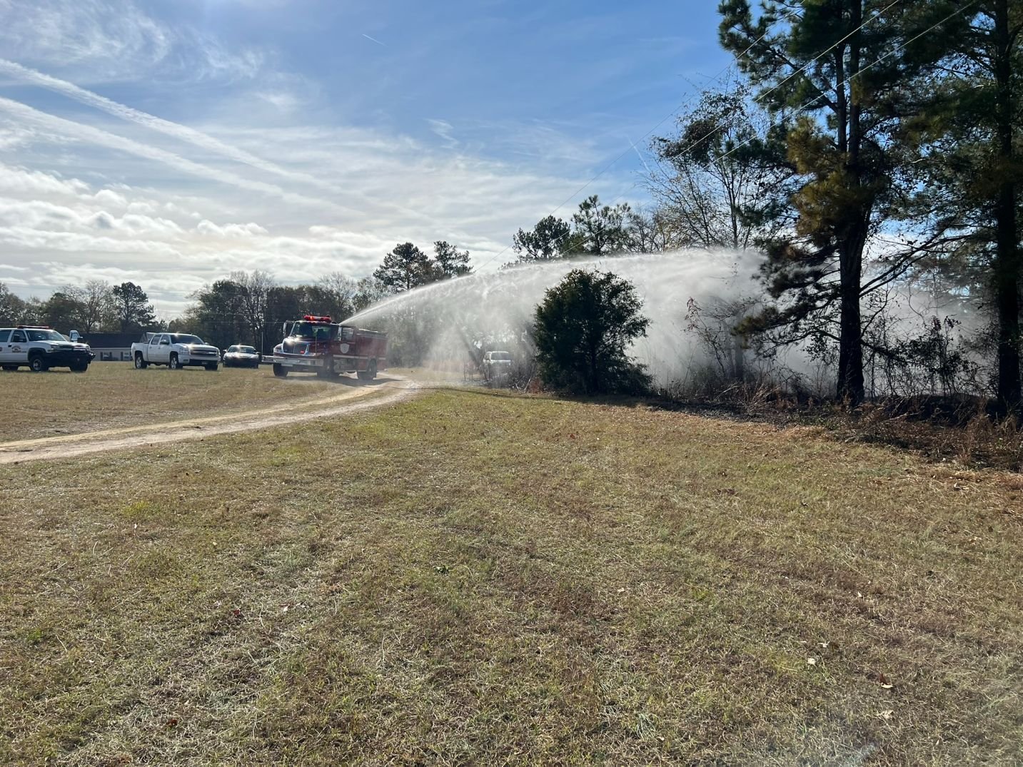 High Point Fire District responded to a report of a woods fire behind a residence on Lake Terry Rd. Upon arrival, Engine 11 and Brush 23 found the fire advancing through the woods behind the home. Engine 11 advanced a hose line to attack the head and left flank of the fire and followed up with its deck gun to soak the entire area with water. Brush 23 used its front turret to attack the right flank. Engine 21 and Tanker 12 arrived to provide water supply.