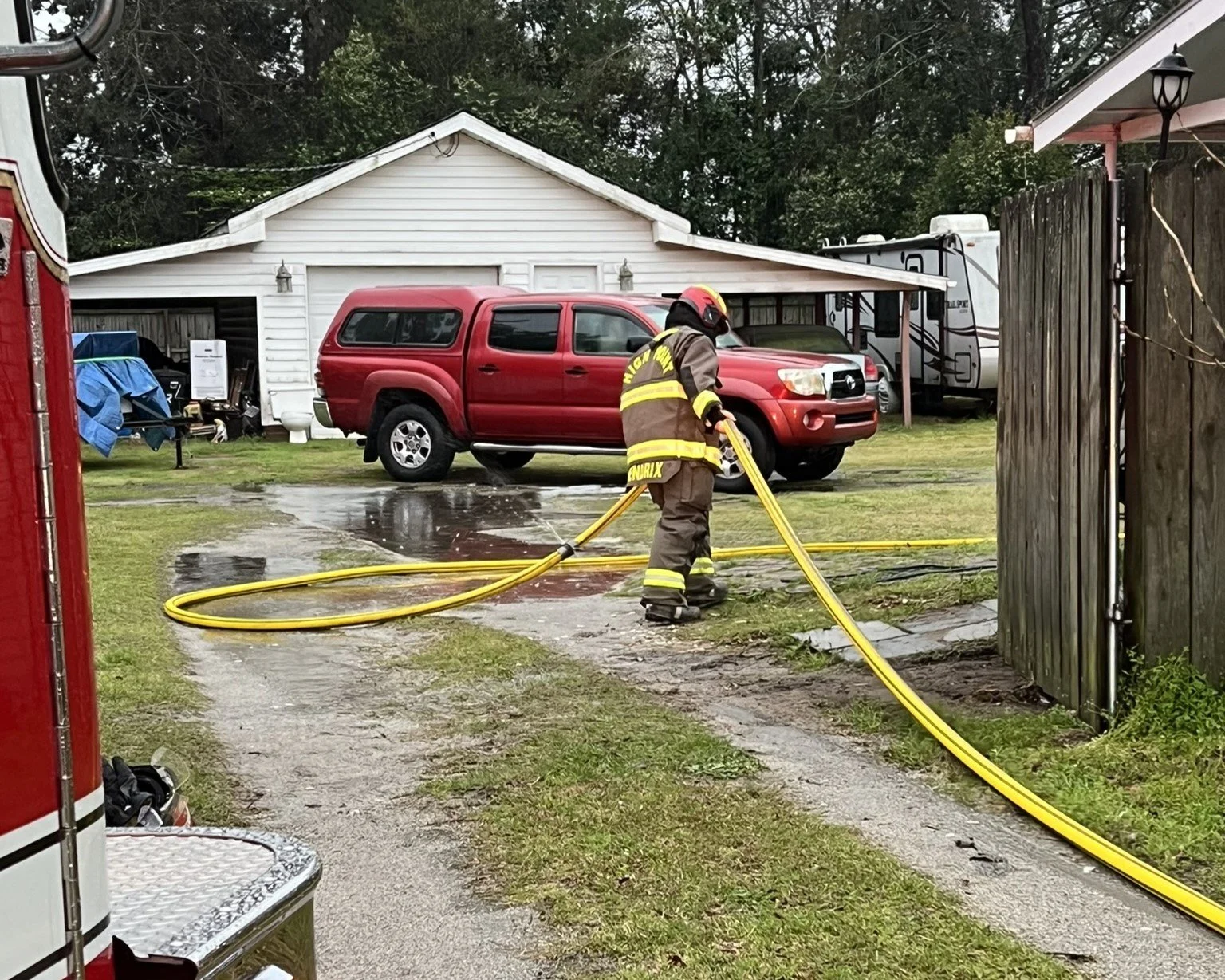 Firefighters deployed a hoseline to the side door and utilized hooks to access the attic, where the fire was successfully extinguished. Crews then conducted thorough checks to ensure there was no further extension of the fire and proceeded with overhaul procedures.