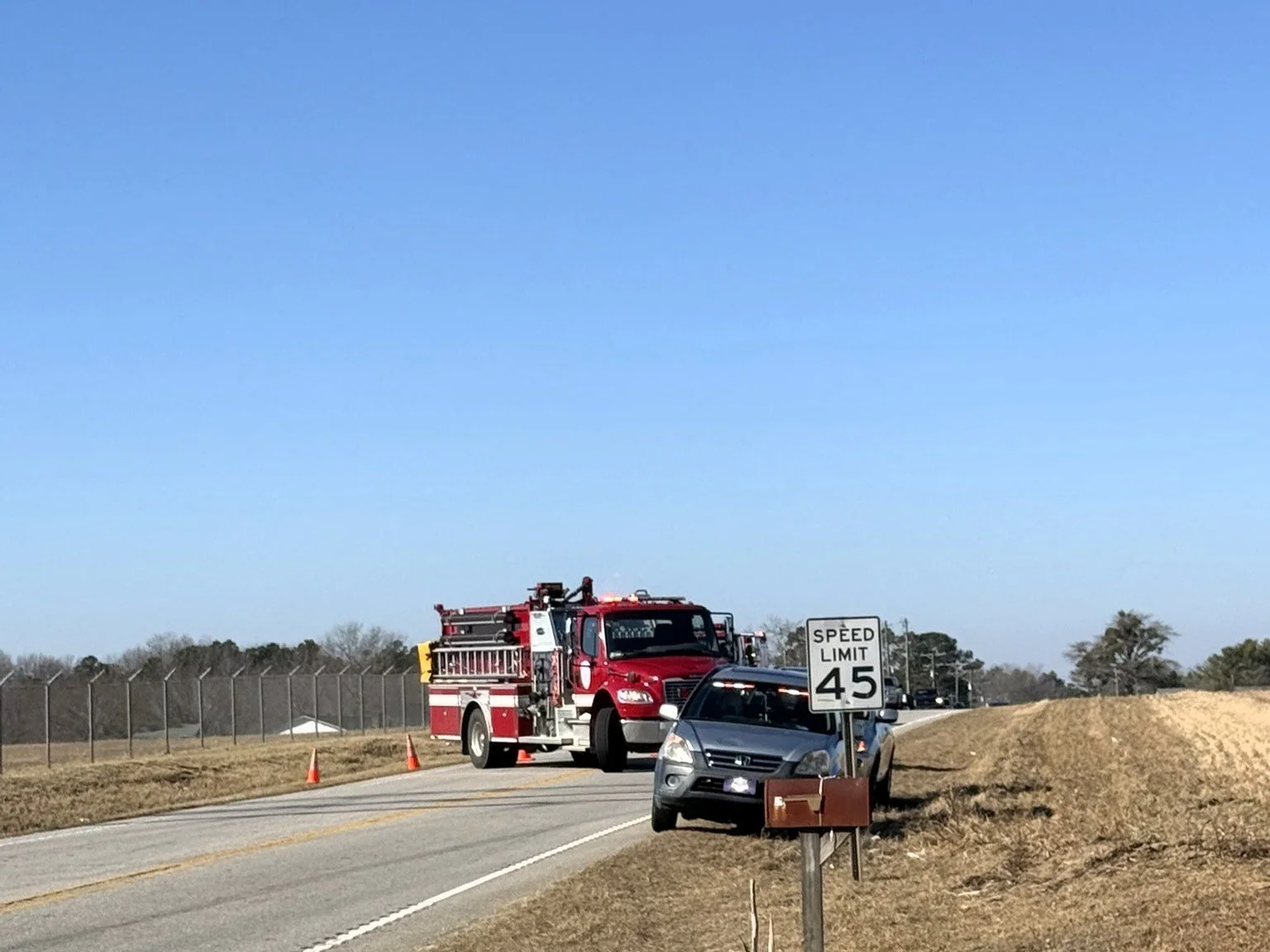 High Point Fire District, Pageland Rescue, and Lifeguard EMS responded to a reported two-vehicle crash at the intersection of Airport Road and Hatchery Road. High Point Engines 51 and 21 arrived on scene and found a collision involving a car and a pickup truck. The driver of the car was trapped and unable to exit the vehicle.