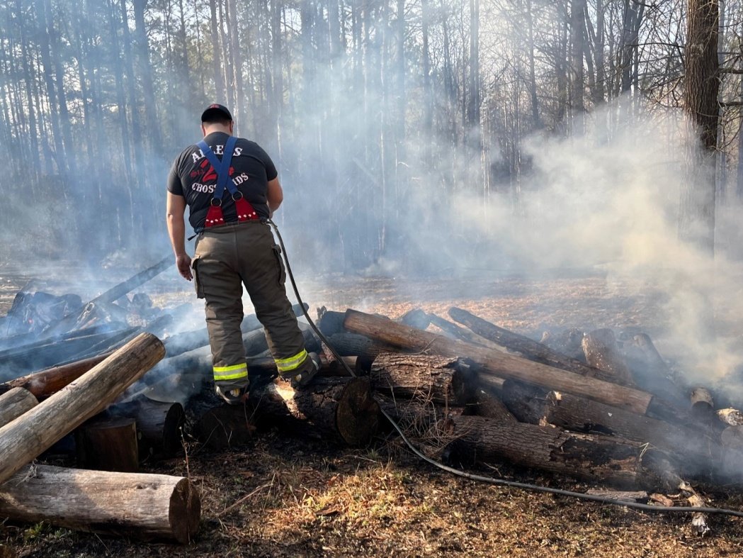 The High Point Fire District responded Saturday afternoon to a report of a woods fire threatening nearby structures on Arkorful Lane.