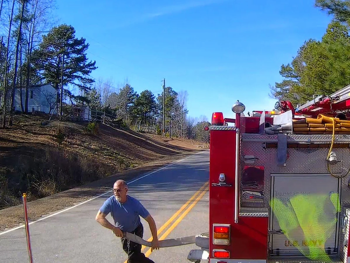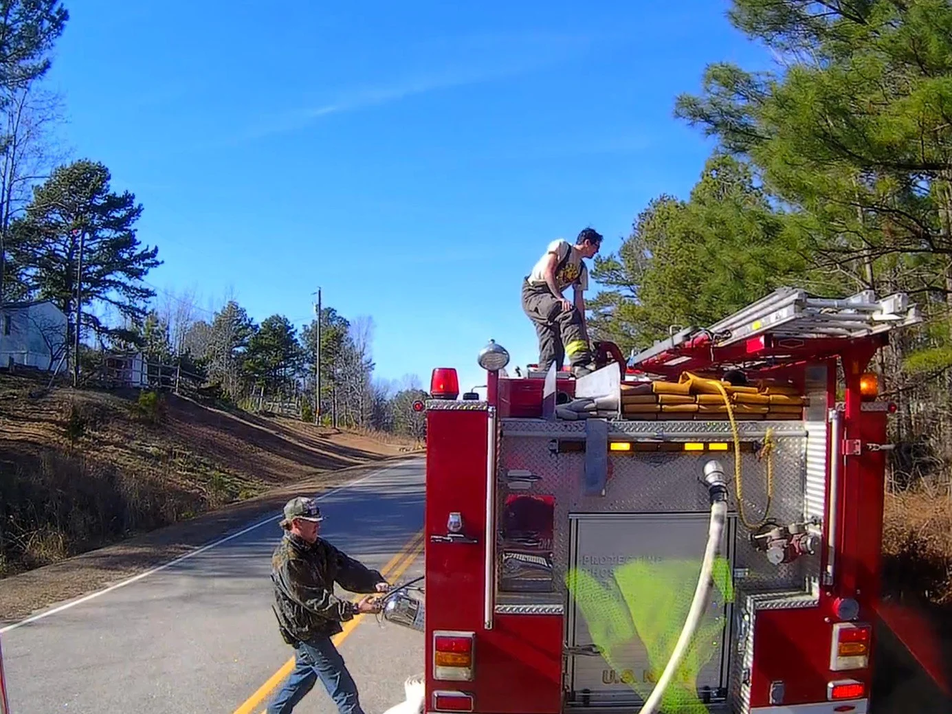 Firefighters also used water can extinguishers to suppress areas of the fire that were inaccessible by apparatus. Engine 51 and Tanker 12 arrived on scene and established a water supply to support fire suppression operations.