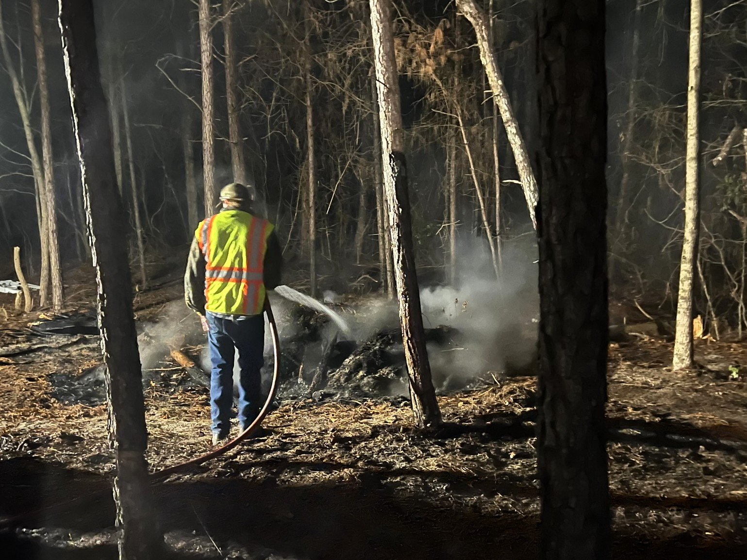 High Point Fire District responded to a report of a woods fire behind a shed on Yellow Branch Rd. Upon arrival, Engine 31 found the woods burning and quickly deployed its deck gun to suppress the main body of the fire. Brush 13 arrived shortly after and used a hose line to fully extinguish the remaining flames and wet down the perimeter to prevent further spread.